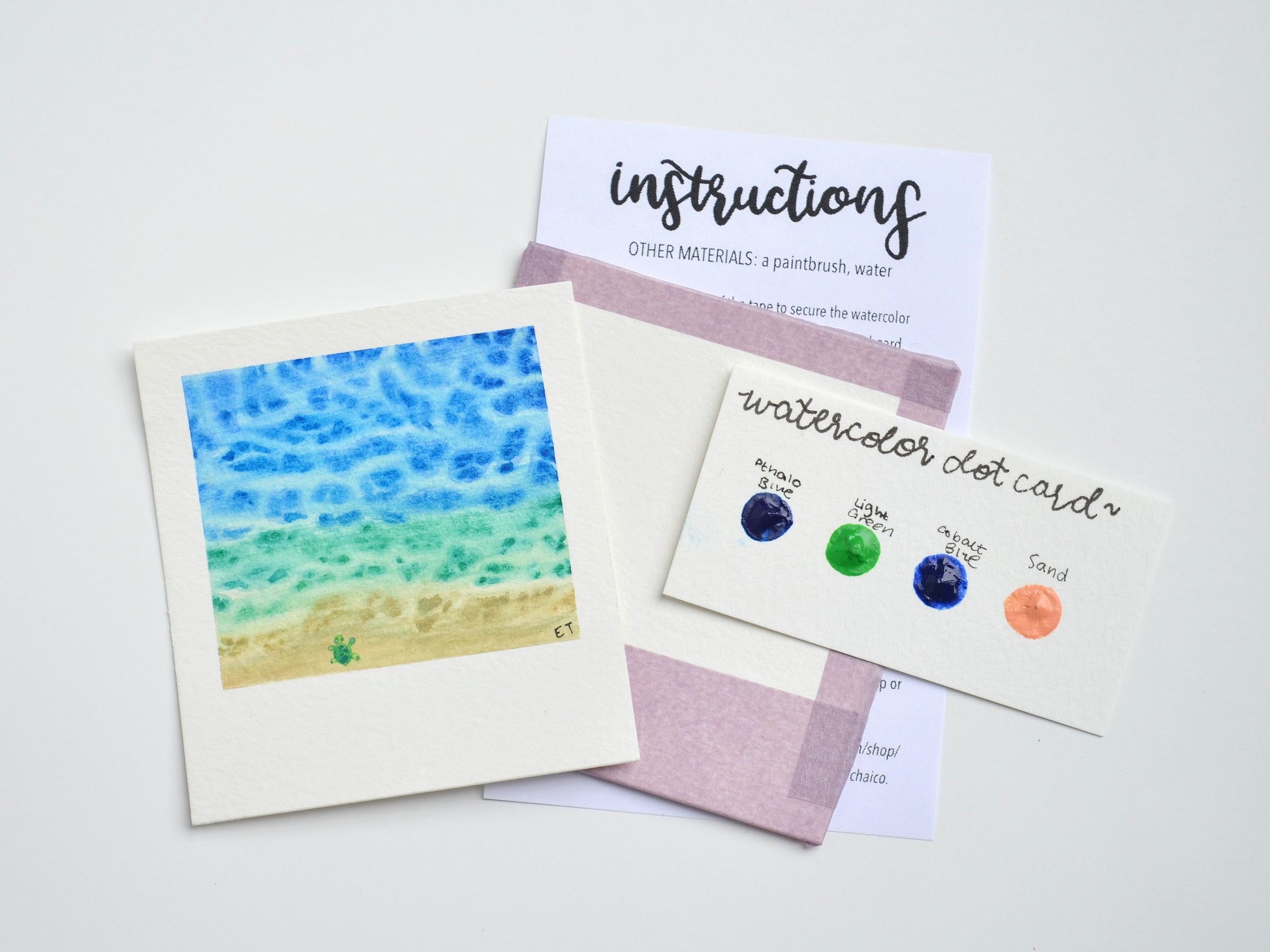 1. High-quality watercolor paper. We use a cellulose-based 140-lb cold-pressed watercolor paper in all our kits. Our greeting card kits use a lighter watercolor paper for ease of mailing!
