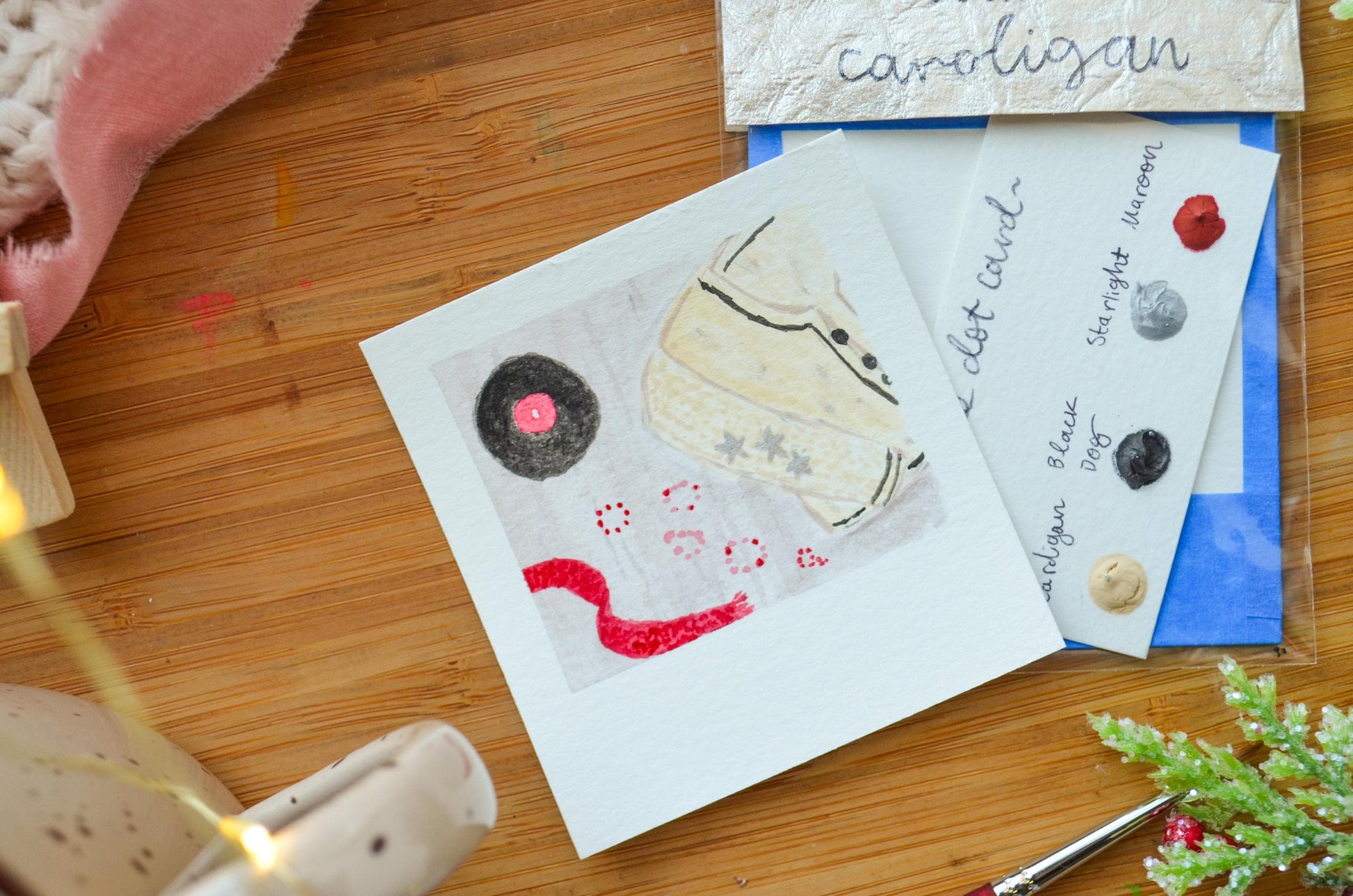 2. Pre-dried dot card. Watercolor and gouache are water-soluble paints that reactivate when wet. Just add a little water from your brush and watch the paint appear!