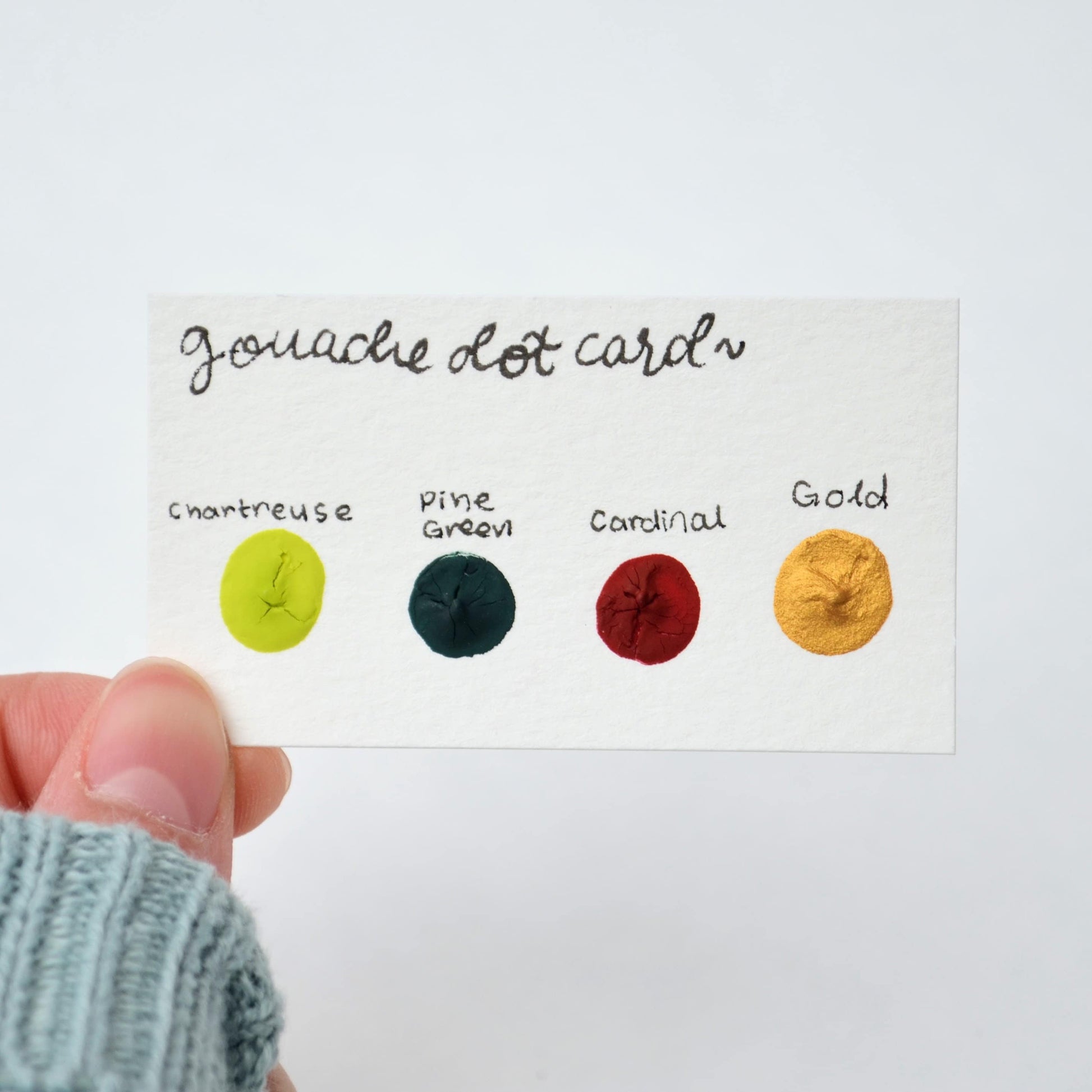 2. Pre-dried dot card. Watercolor and gouache are water-soluble paints that reactivate when wet. Just add a little water from your brush and watch the paint appear!