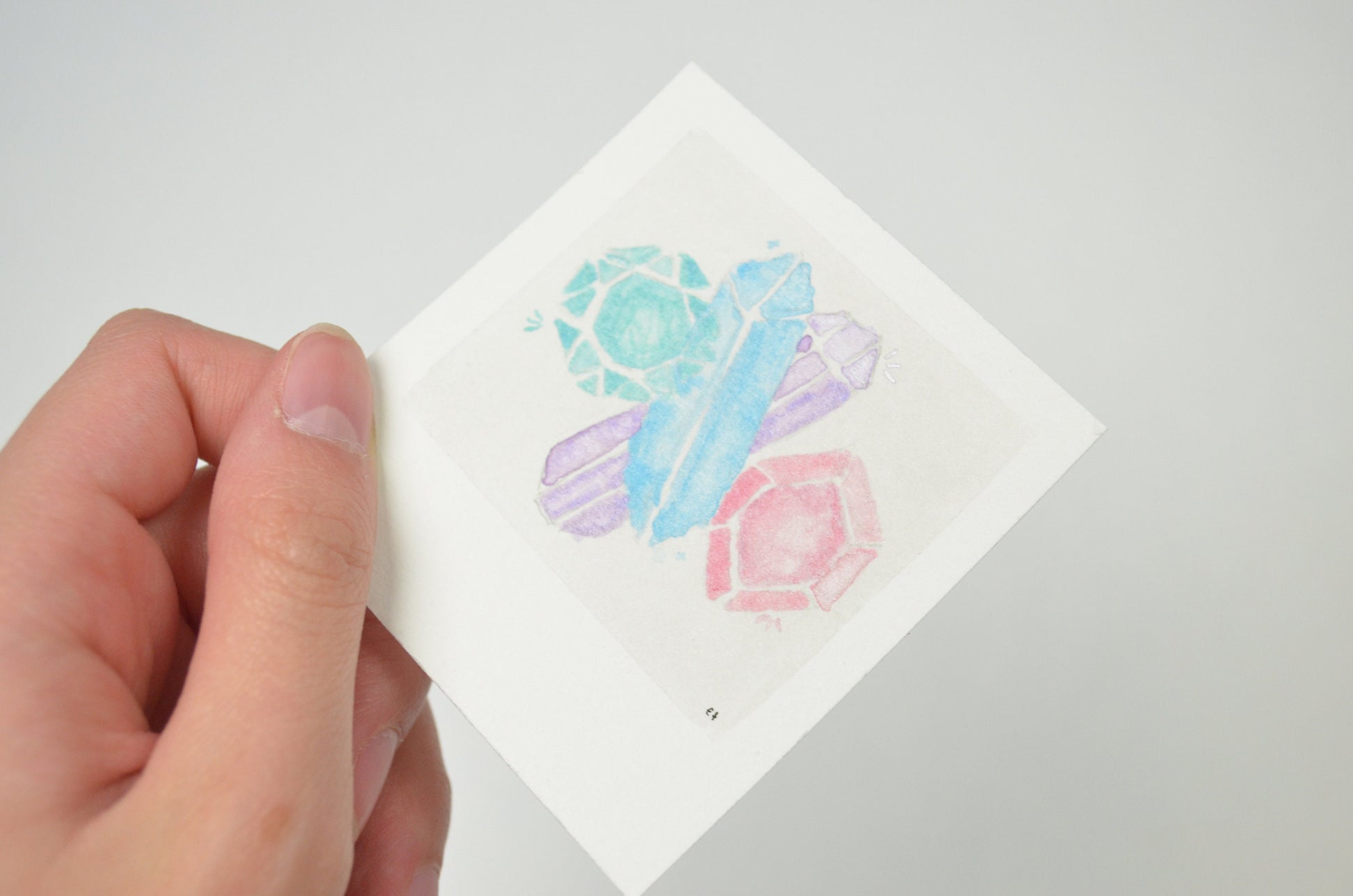2. Pre-dried dot card. Watercolor and gouache are water-soluble paints that reactivate when wet. Just add a little water from your brush and watch the paint appear!