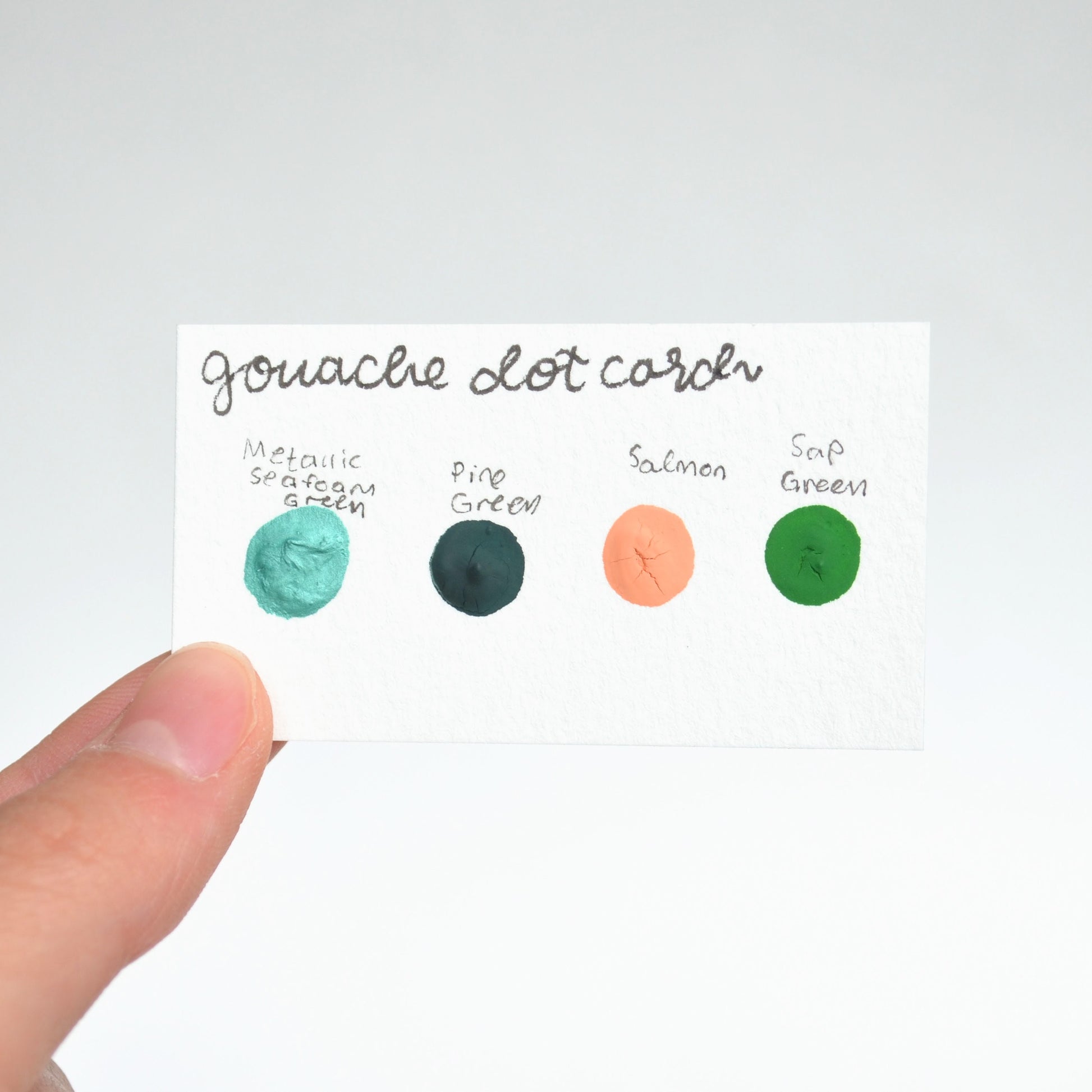 2. Pre-dried dot card. Watercolor and gouache are water-soluble paints that reactivate when wet. Just add a little water from your brush and watch the paint appear!