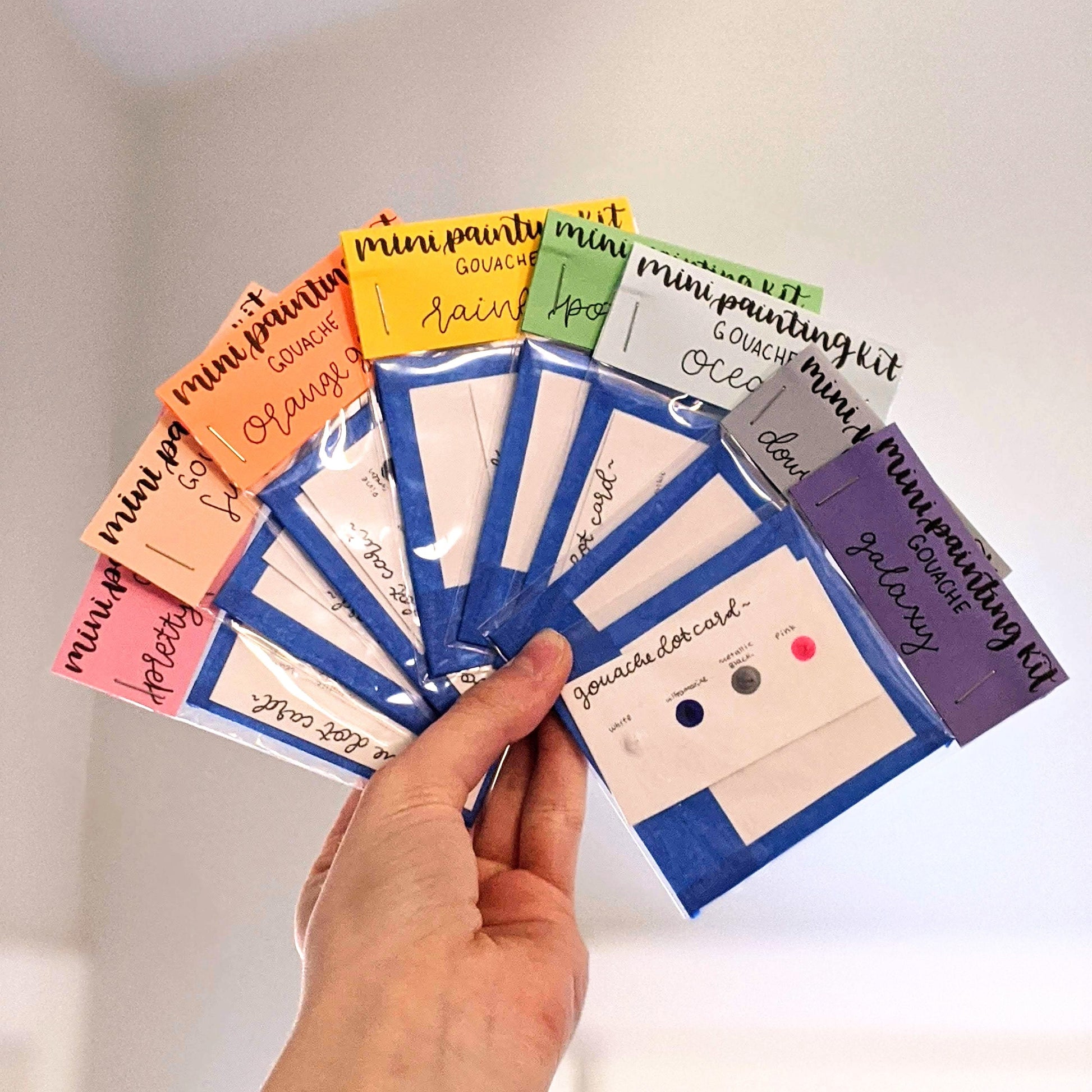 2. Pre-dried dot card. Watercolor and gouache are water-soluble paints that reactivate when wet. Just add a little water from your brush and watch the paint appear!