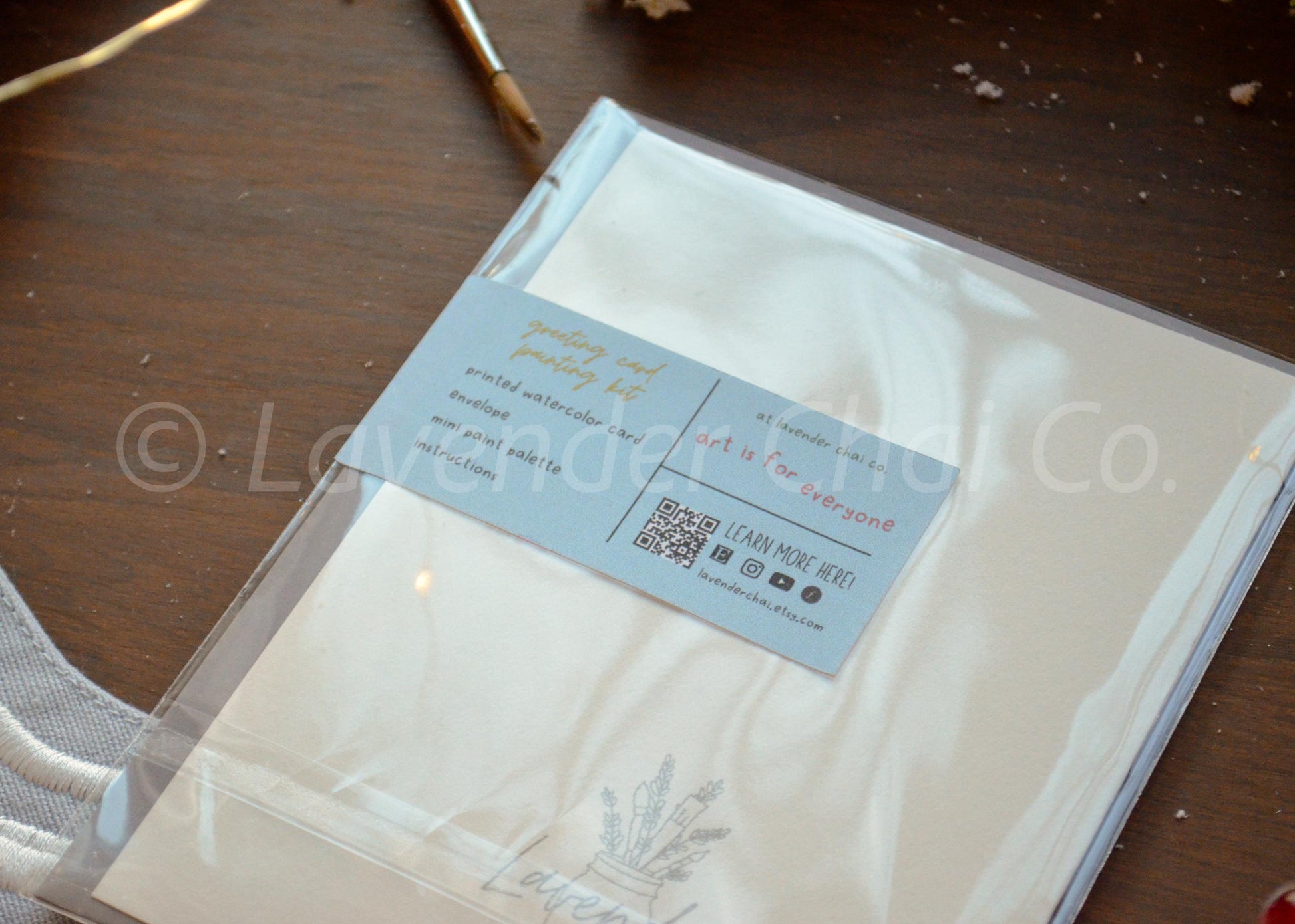1. High-quality watercolor paper. We use a cellulose-based 140-lb cold-pressed watercolor paper in all our kits. Our greeting card kits use a lighter watercolor paper for ease of mailing!